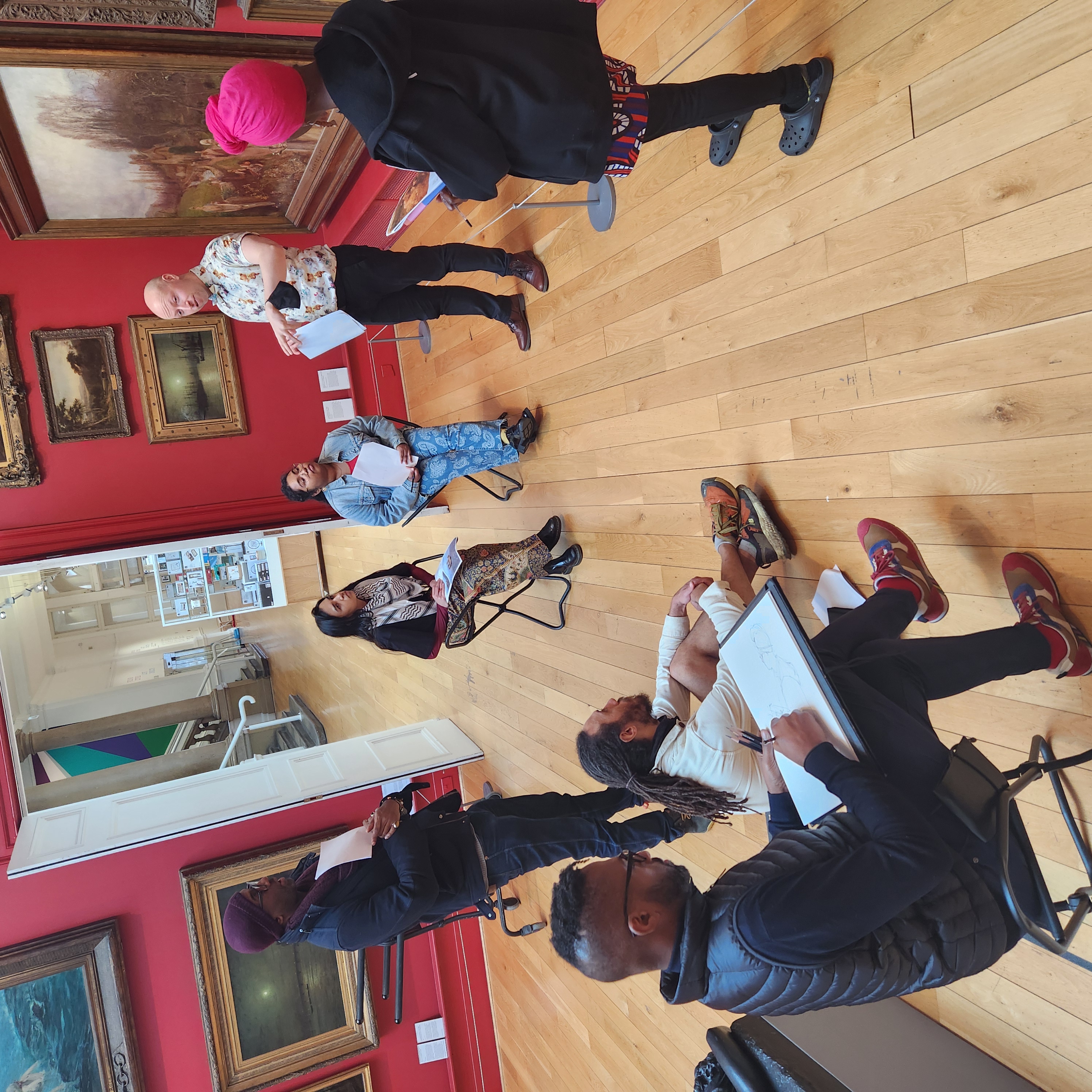 Curtis has allowed a safe space for confidential discussions to take place in the Gallery while drawing the sitters, which has given some of them a new confidence. He has managed to make a difficult subject open and engaging. Curtis’s visibility and presence in the Gallery and on social media have raised the profile of this project, and his attendance at events – such as Nik Nak’s performance in Central Court – has widened his networks in this city, and he has mentored young Black artists with whom we have existing relationships. During the time of Curtis’s residency, we have acquired and shown works by Emii Alrai, Skye Davies, Ronald Moody, Veronica Ryan, Yinka Shonibare CBE and Dominique White.